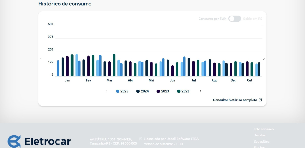 • Informações de todas as UC’s cadastradas pelo consumidor sem necessidade de logar novamente;