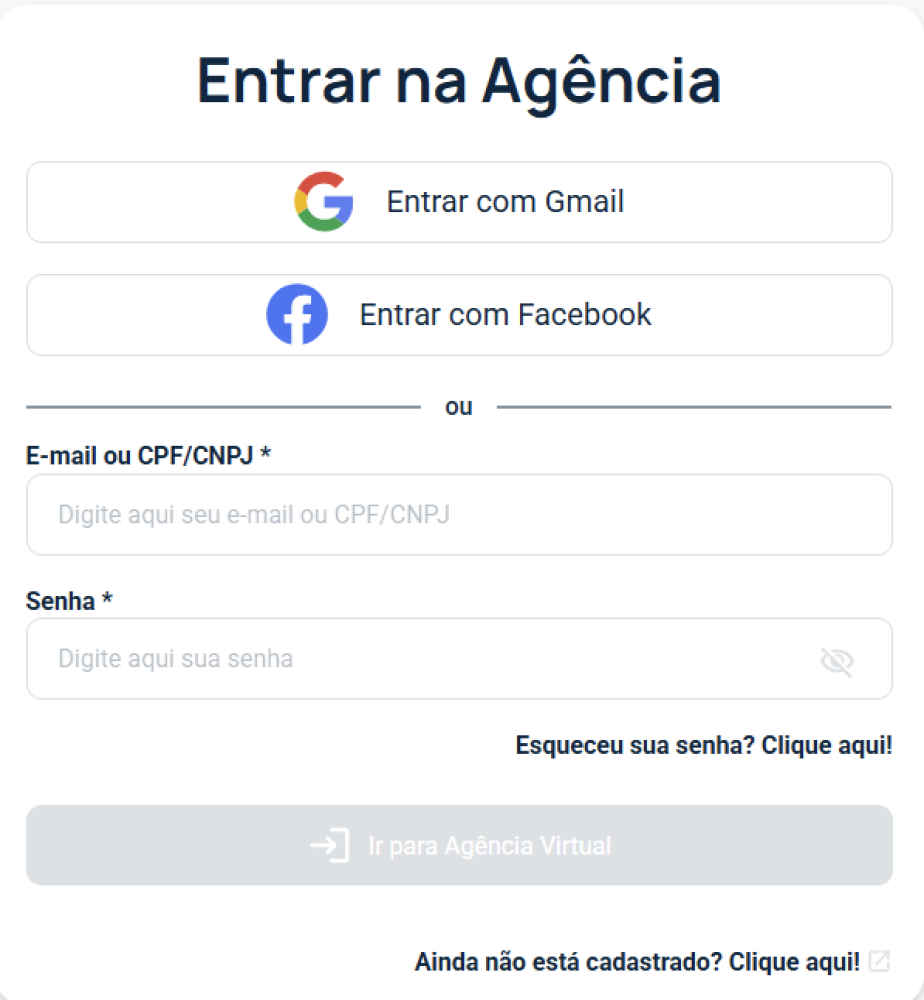 OBSERVAÇÃO IMPORTANTE: Devido a nova tecnologia é necessário realizar um novo cadastro na opção "Ainda não está cadastrado? Clique aqui!".